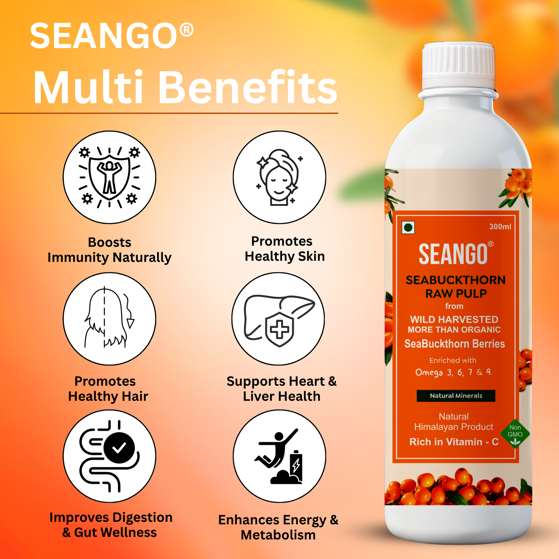 • SEANGO Seabuckthorn Pulp Juice Is Made From Wild Harvested Seabuckthorn Berries. it's more than organic .